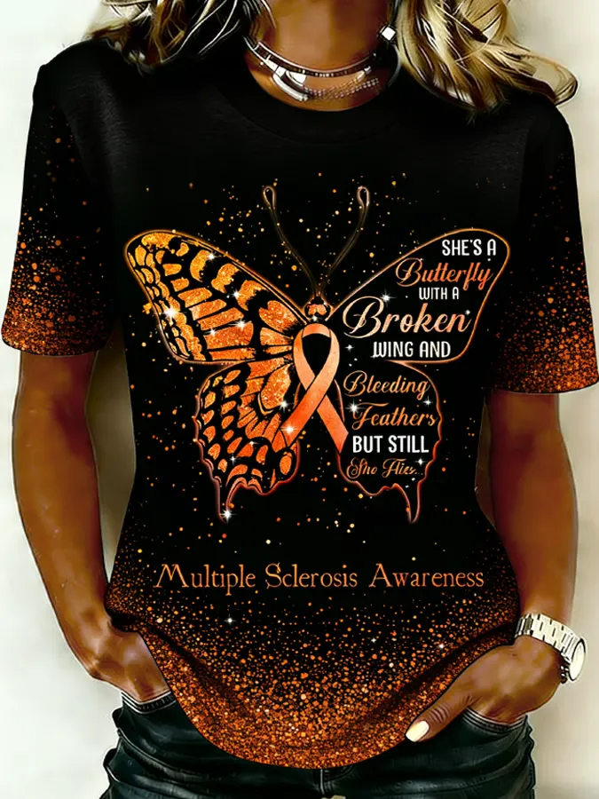 Women's MS Awareness Butterfly Broken Wing Print Casual T-Shirt