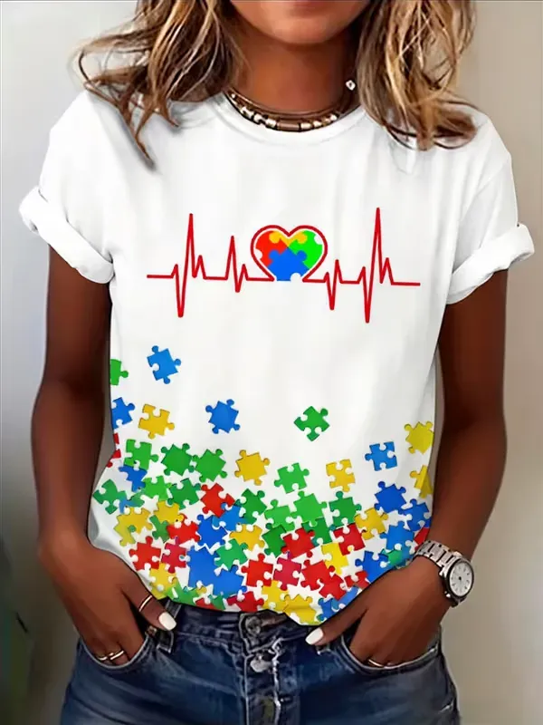 Women's Autism Awareness Printed Casual T-shirt