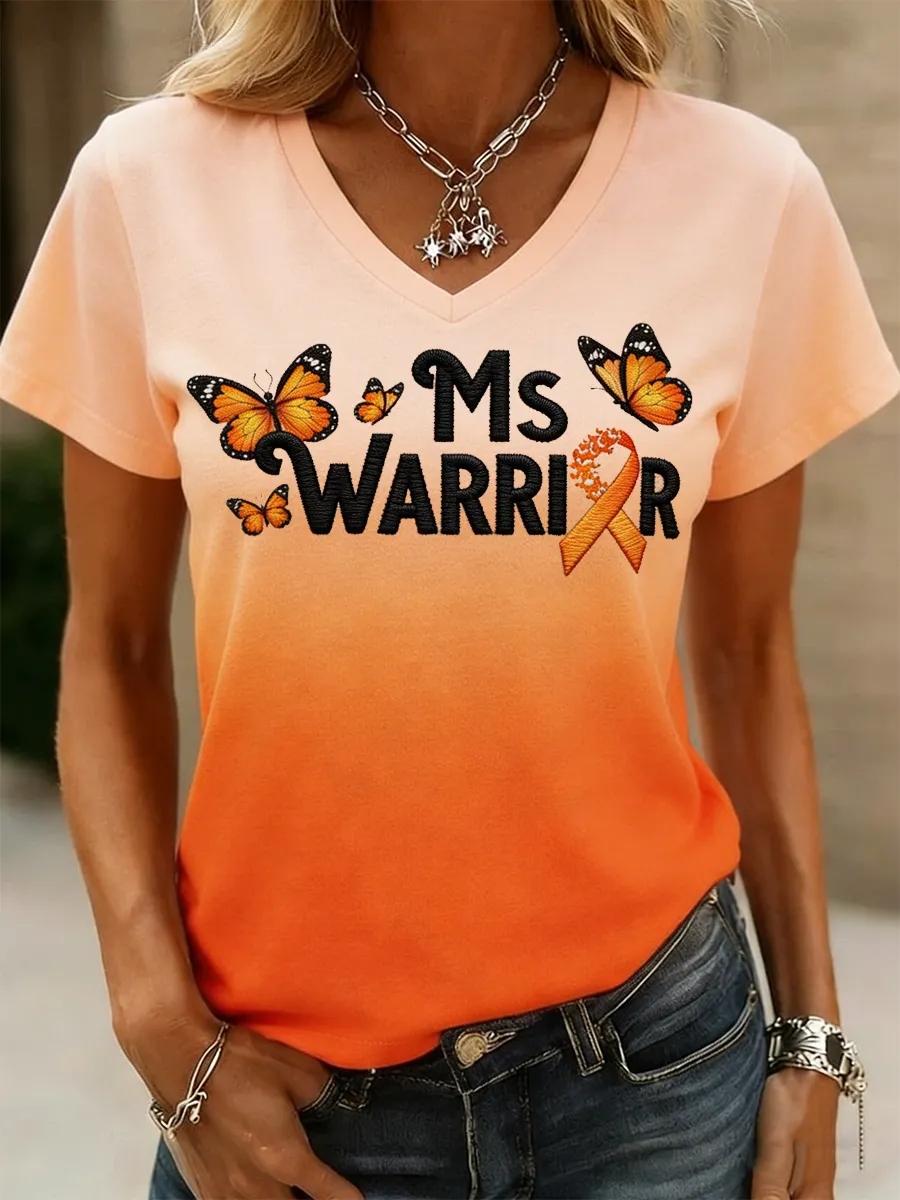 Multiple Sclerosis Awareness MS Warrior Butterfly & Orange Ribbon Gradient V-Neck T-Shirt