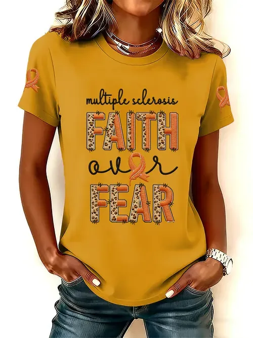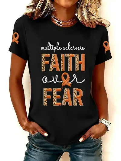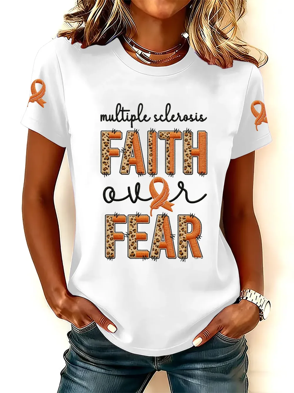 Women's Multiple Sclerosis Awareness Faith Over Fear Print T-Shirt