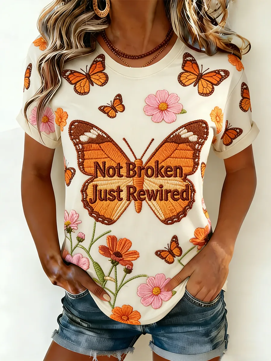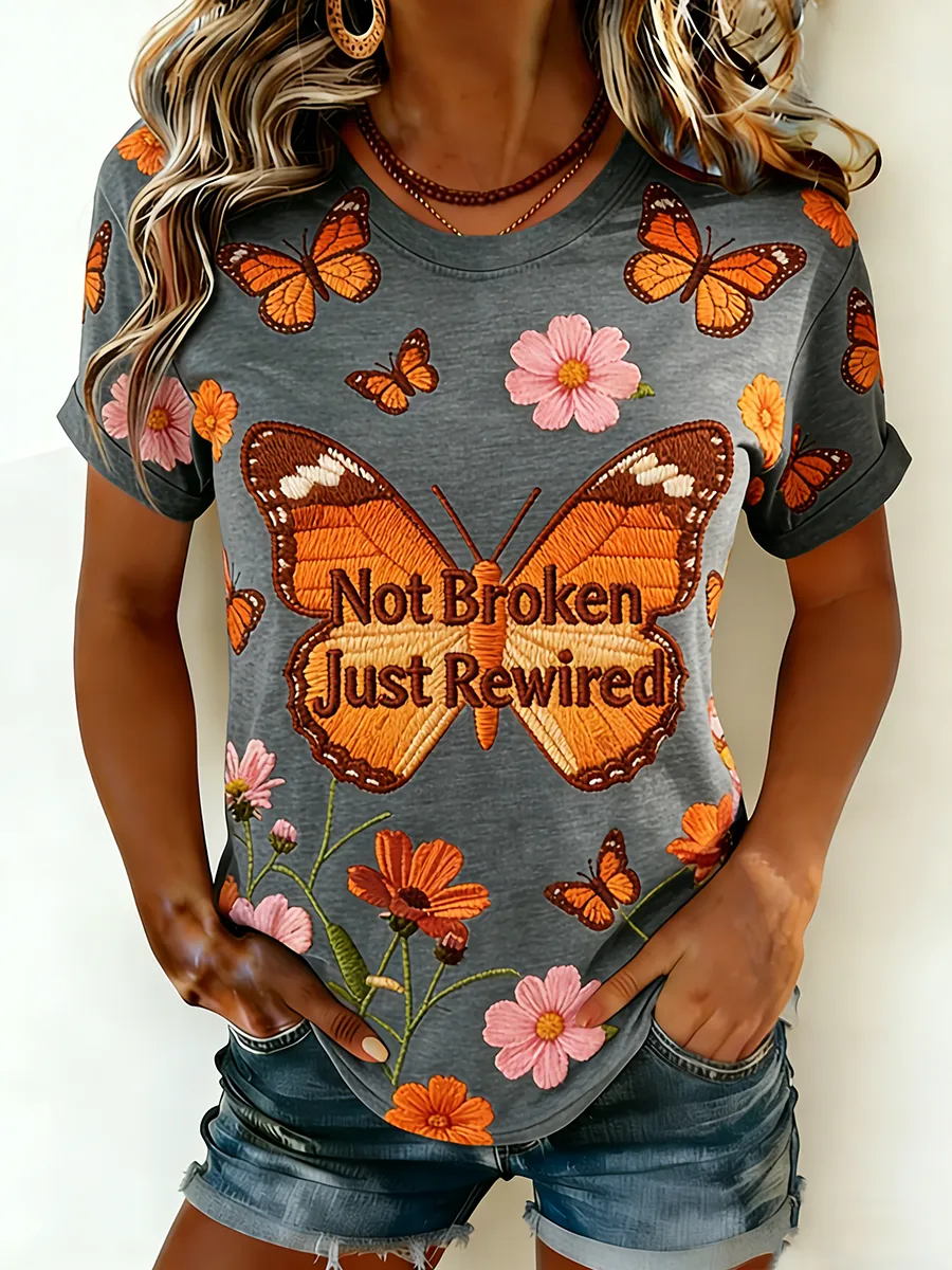 Women's Multiple Sclerosis Awareness Not Broken Just Rewired Print Crew Neck T-Shirt