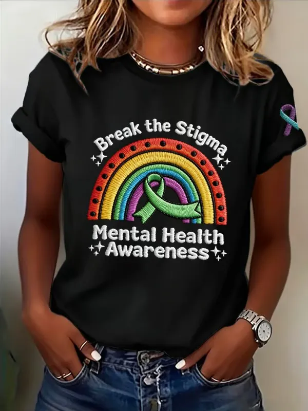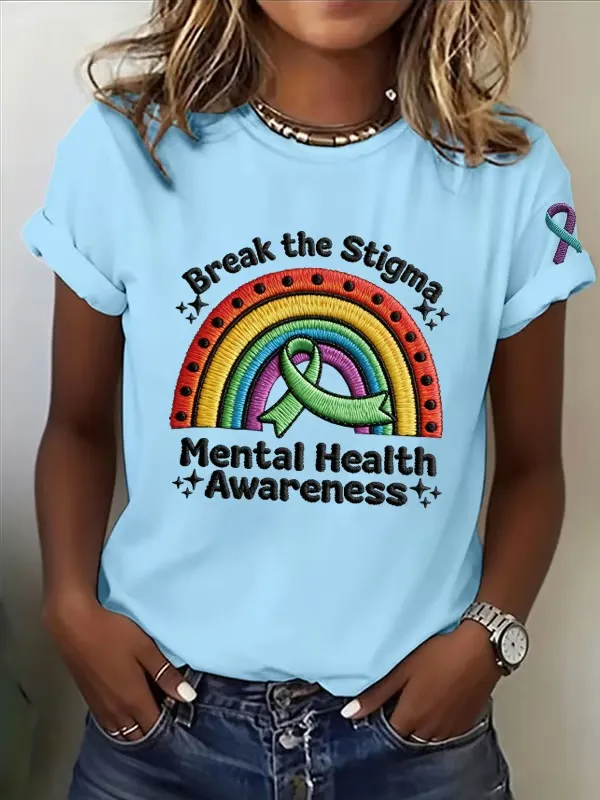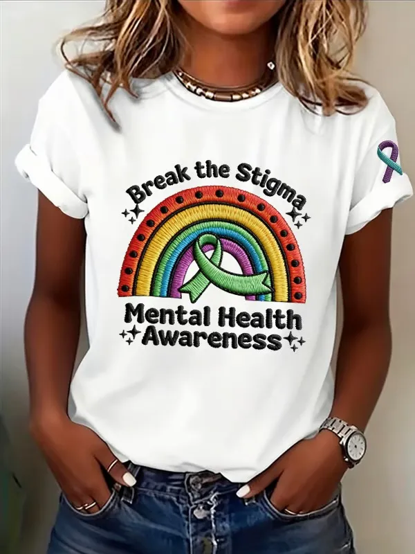 Women's Casual Mental Health Awareness Printed Short-Sleeve T-Shirt