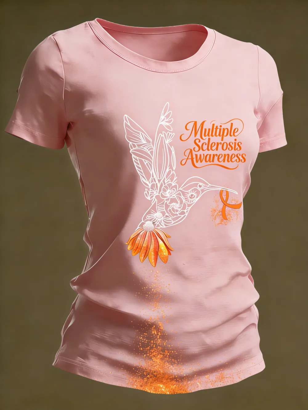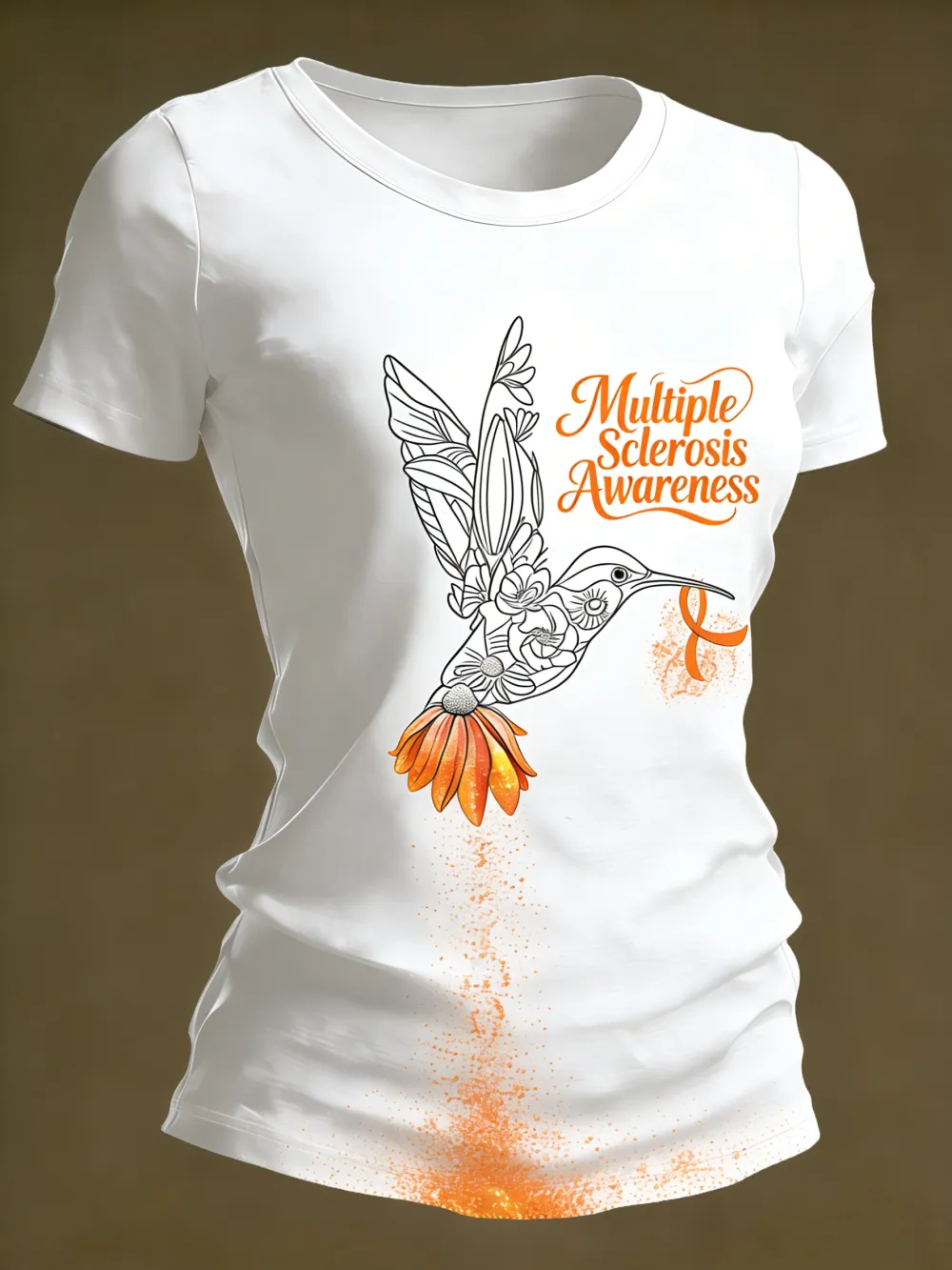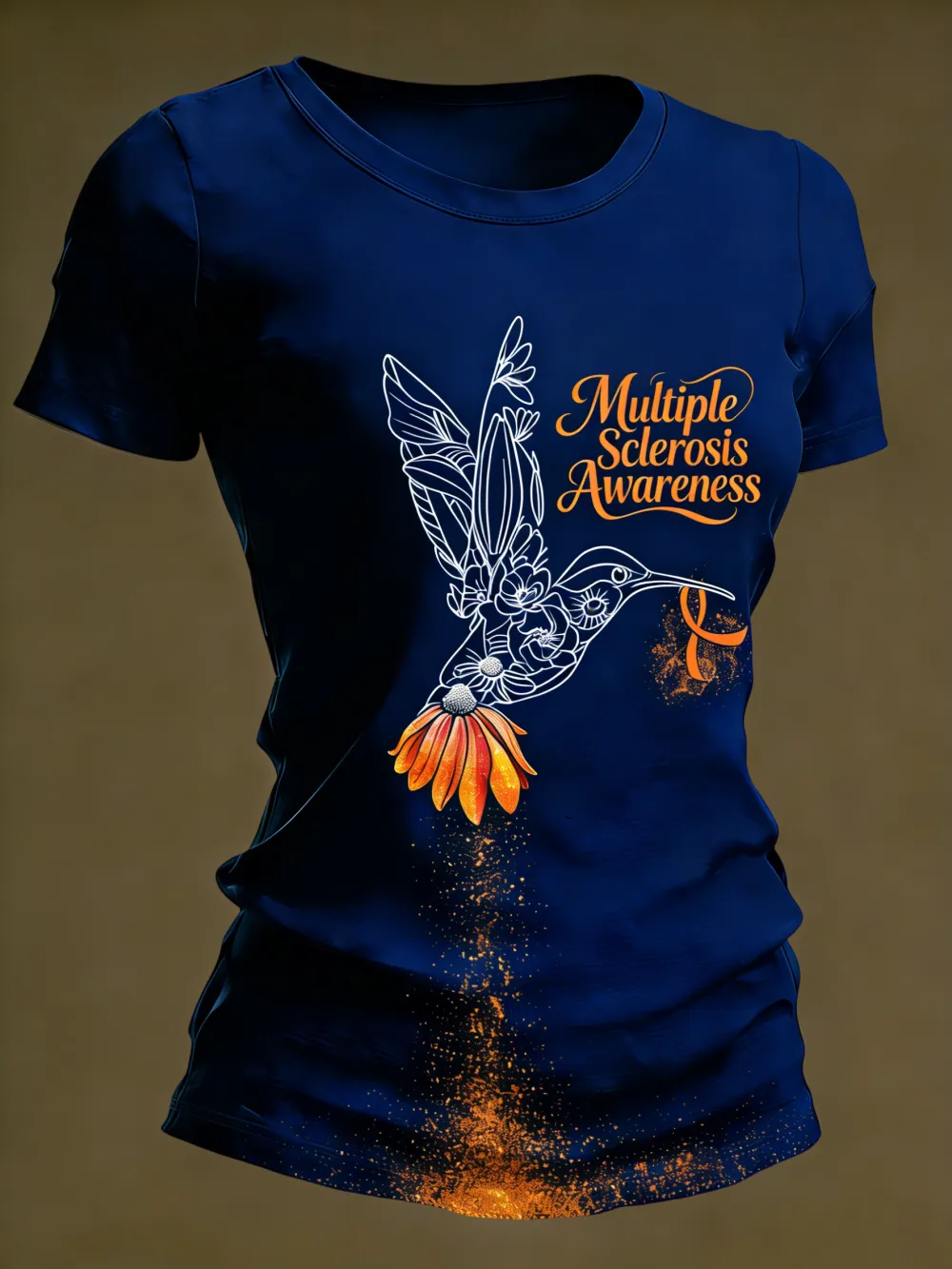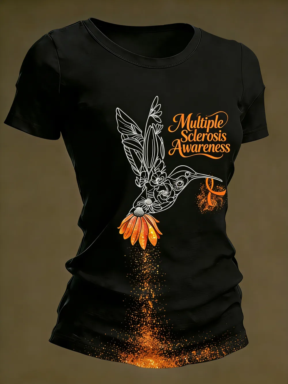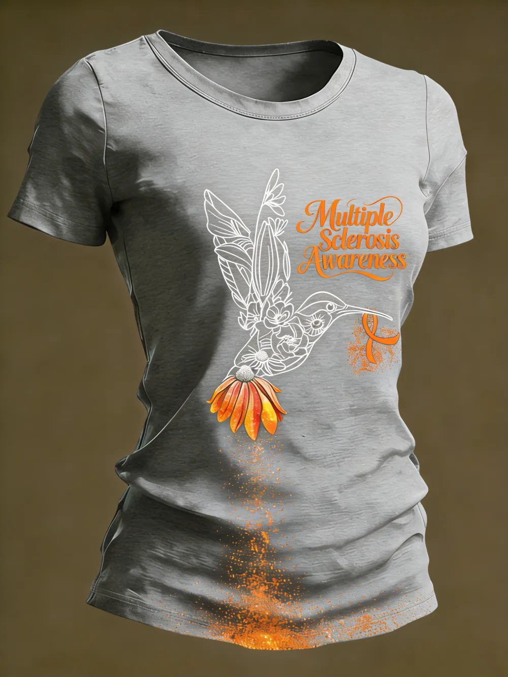 Multiple Sclerosis Awareness Hummingbird Orange Ribbon T-Shirt