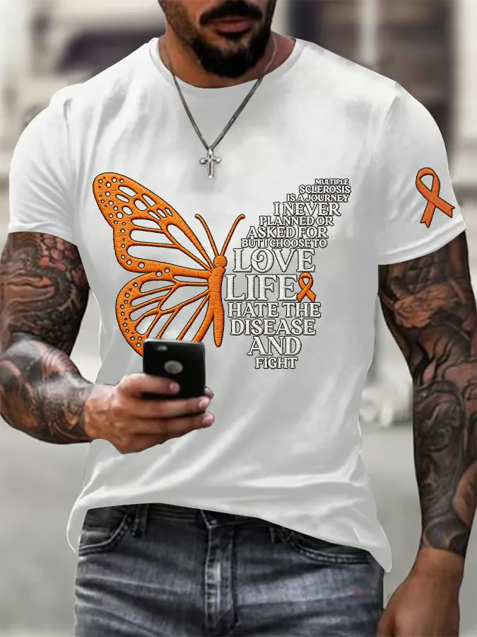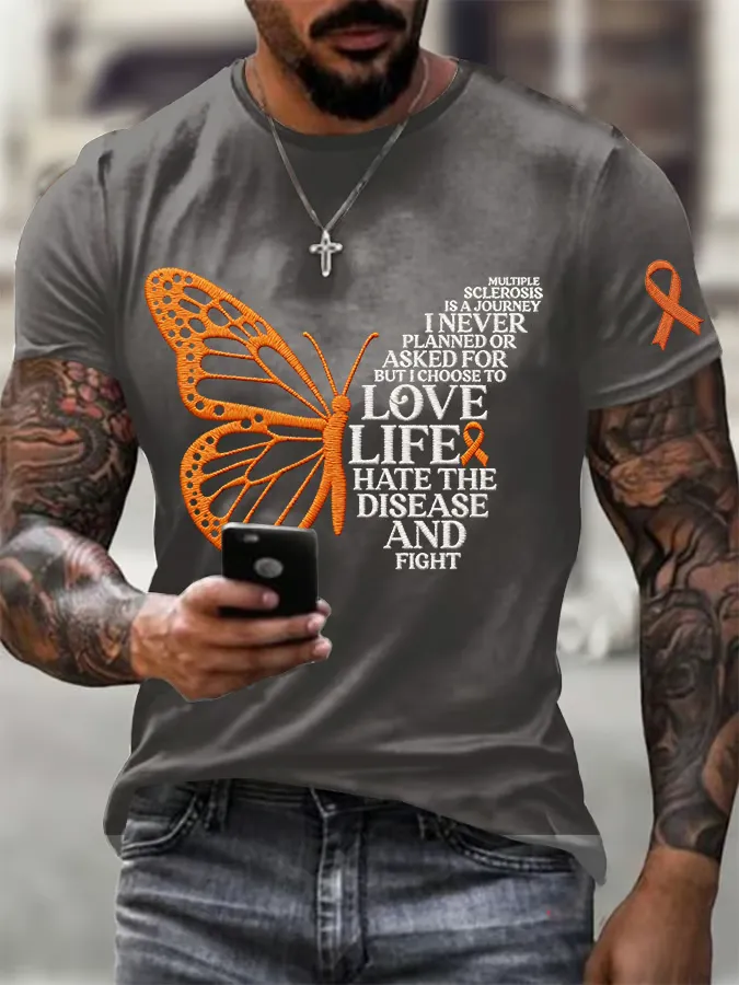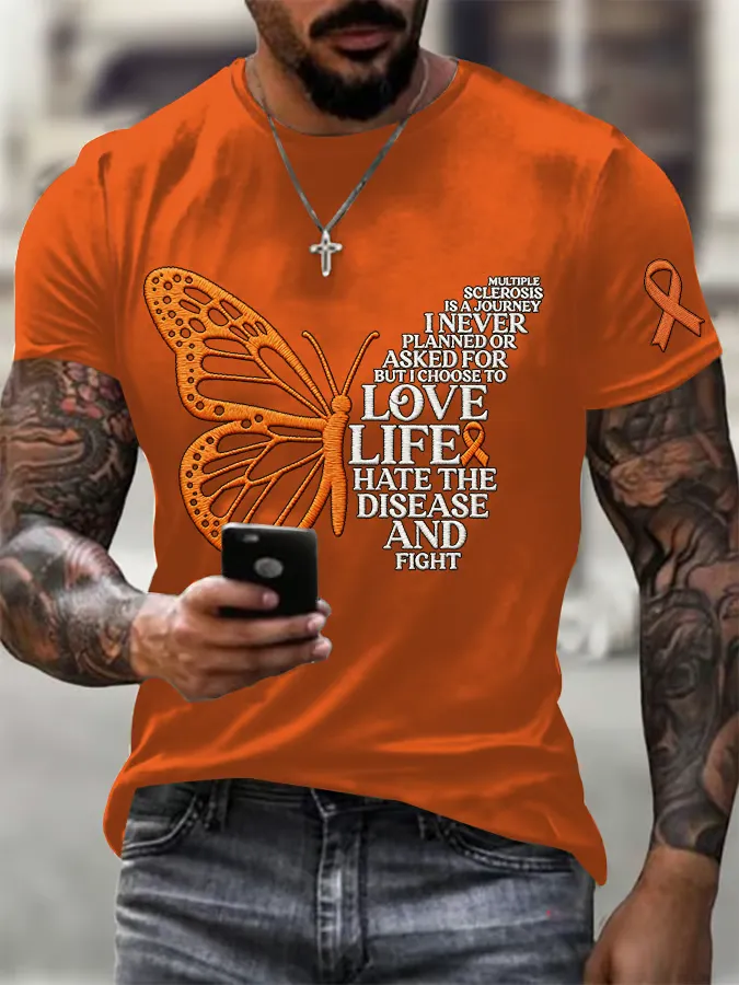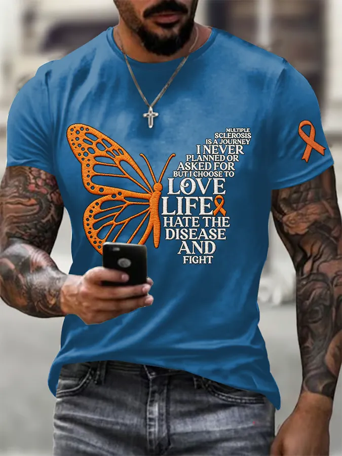 Men's Retro MS Warrior Butterfly Multiple Sclerosis Awareness Print T-Shirt