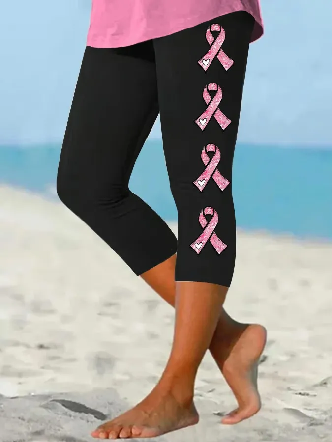 Women'S Pink Ribbon Breast Cancer Awareness Warrior Supporter Cropped Leggings